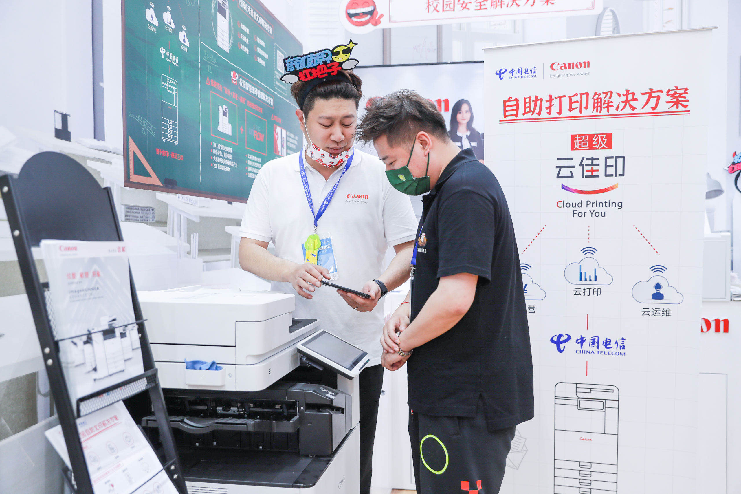 校園建設的信息化與現代化是教育市場的發展趨勢,也是佳能不斷推動教學文印解決方案優化更新的發展方向。本屆展會,佳能攜手中國電信,在各自展臺互動展出了自助打印解決方案。該解決方案的軟件及硬件部分由集“云運營、云打印、云維修”于一體的“超級云佳印”共享打印解決方案與佳能數碼復合機組合而成,并由中國電信提供的網絡連接,形成了一套適用于圖書館、教學樓、文印室、宿舍區的多場景文印解決方案,滿足校園文印服務化、自助化、數字化的需求,為師生提供優質便捷的自助打印服務。