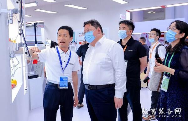 會后,教育部體衛藝司體育與衛生教育處副處長樊澤民蒞臨立達信展位,體驗立達信健康光環境,充分肯定立達信為近視防控工作的不懈努力。