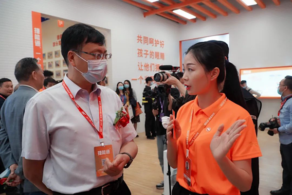 中國教育裝備行業(yè)協(xié)會張繼芳部長、四川省教育廳二級巡視員王羽、四川省經(jīng)濟(jì)和信息化廳二級巡視員蘇平、四川教育裝備行業(yè)協(xié)會會長張林祥等相關(guān)領(lǐng)導(dǎo)蒞臨捷能通展館并對捷能通教室照明產(chǎn)品的護(hù)眼效果和智慧校園平臺表示認(rèn)可,充分肯定了捷能通助力學(xué)生近視防控的成果。