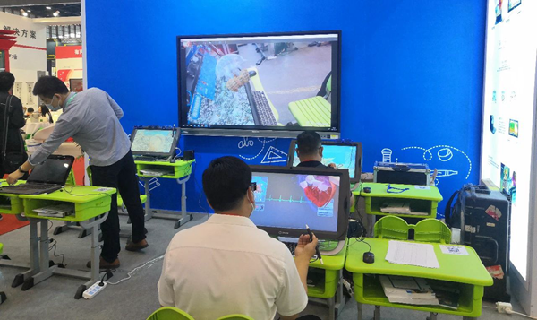 在未來教育與創(chuàng)新學(xué)科建設(shè)設(shè)備區(qū),也未艾攜VR/AR技術(shù)、裸眼3D技術(shù)及虛擬仿真技術(shù)等精彩亮相。以國際上先進(jìn)的桌面式VR一體機(jī)設(shè)備和筆記本式VR設(shè)備為載體,重點(diǎn)展現(xiàn)出VR/AR技術(shù)、裸眼3D技術(shù)等在基礎(chǔ)教育、職業(yè)教育領(lǐng)域的應(yīng)用與意義,引起教育裝備企業(yè)和諸多業(yè)界專家的強(qiáng)烈關(guān)注,吸引眾多同仁、學(xué)校校長及教師爭相體驗(yàn)。