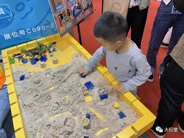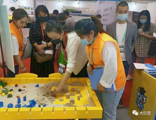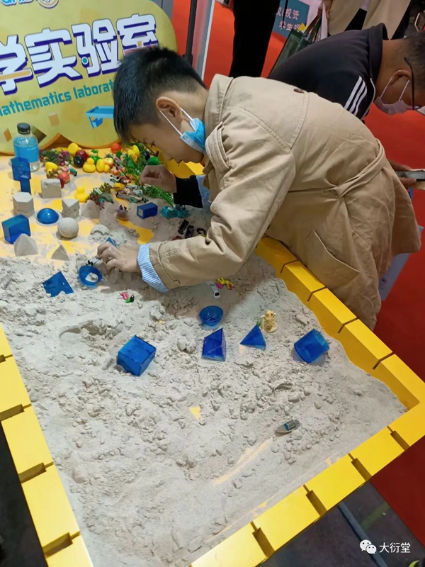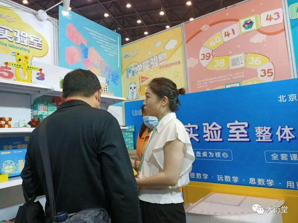 現(xiàn)場的小伙伴為參展人員耐心詳細(xì)地講解大衍堂的數(shù)學(xué)實驗理念與綜合實踐解決方案,例如,以大衍堂首創(chuàng)、獨立研發(fā)的核心教具數(shù)學(xué)實驗沙盤桌,通過沙盤提供一種數(shù)學(xué)教學(xué)方式,將抽象的問題具象化、復(fù)雜的問題簡單化,在沙盤中搭建模型,建立場景,用可視化教學(xué)為廣大教育工作者解決實際問題。