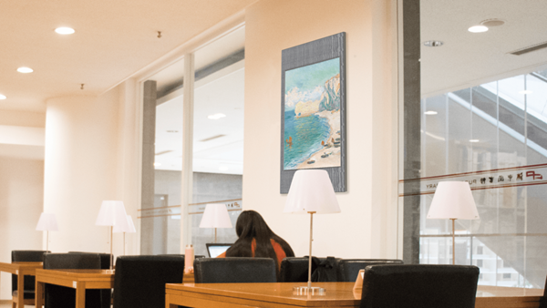 無論是在校園的走廊里,或者是校園藝術館、校園歷史館、校園博物館、校園會客空間等場景,希沃云屏·藝境系列都可以根據不同的場景需求匹配展示內容和播放模式。