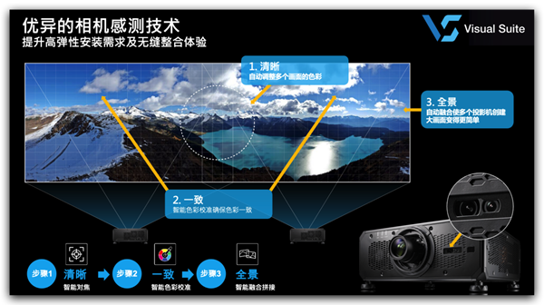 CUL25k/20k不僅突破20000lm高亮亮度,加載智慧“芯”, OMS奧圖碼智能影像管理平臺,奧圖碼影像大師,奧圖碼感知取像技術,再加上投影機安裝攝像頭,優異的相機感測,全方位提升高彈性安裝需求及無縫整合體驗。