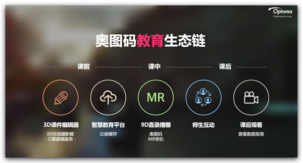 百年大計,教育為本,數字浪潮來襲,5G的發展,推動教育信息化,智慧化,發布會上,蕭子翔先生首先為大家帶來了奧圖碼智慧教育解決方案,全面分享奧圖碼打造的智慧教育生態鏈,從課前,課中到課后三個階段,從3D課件編輯器,到智慧教育平臺,到9D直錄棚,再到師生互動,課后觀看幾個環節去揭開奧圖碼解決方案的核心。