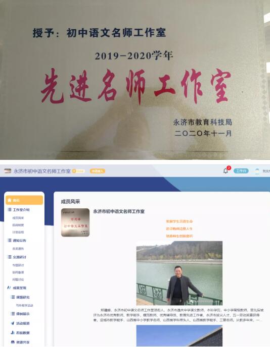 這是工作室帶頭人鄭建峰老師給大家的留言,這位擁有諸多榮譽的語文學科名師,自2019年工作室掛牌成立以來,他一直保持著一絲不茍的工作作風,在搞好傳統線下教研交流的同時,積極融合教育信息化資源,在運城市智慧教育云平臺開設專題教研空間,借助網絡的力量,形成工作室及學科帶頭人輻射力和影響力。