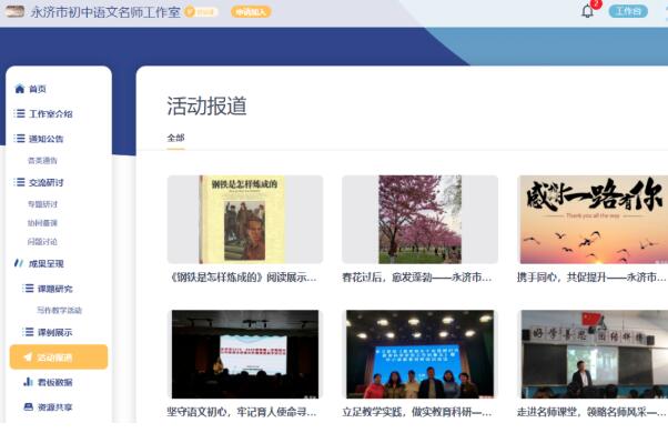 名師網絡工作室是基于互聯網條件下,將名師工作室與網絡學習空間有效結合,通過線上開展教研培訓、專題講座、完善區校資源建設等研修活動,為教師成長賦能加速。
