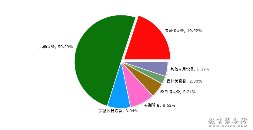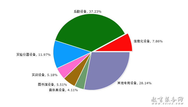 根據(jù)對(duì)教育裝備細(xì)分的歸納,教育裝備網(wǎng)將教育裝備具體劃分為七大類(lèi),即信息化設(shè)備(含智能平板、錄播系統(tǒng)、智慧黑板等),后勤設(shè)備(含校園基建、安防設(shè)備、食堂設(shè)備、課桌椅等),實(shí)驗(yàn)儀器設(shè)備(含儀器儀表、實(shí)驗(yàn)室平臺(tái)等),實(shí)訓(xùn)設(shè)備(含實(shí)訓(xùn)系統(tǒng)、實(shí)訓(xùn)設(shè)施等),圖書(shū)館設(shè)備(含借還系統(tǒng)、微型圖書(shū)館等),音體美設(shè)備(含樂(lè)器、體育設(shè)施、美術(shù)用品等),其他專(zhuān)用設(shè)備(含創(chuàng)客教育、心理健康特教設(shè)備等)。