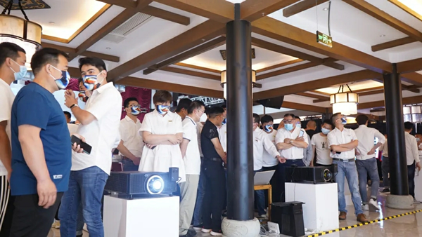 發布會現場演示環節,人頭攢動,行業專家,行業核心伙伴紛紛體驗奧圖碼智能管理平臺給大家帶來的智慧‘神奇功能和表現。