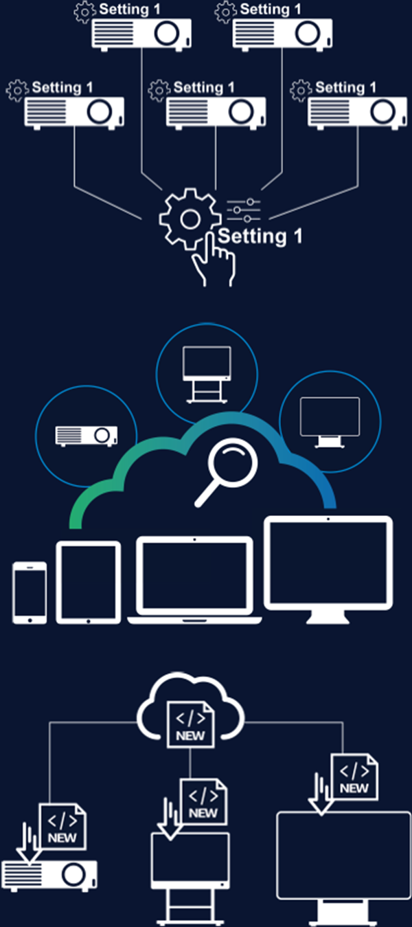 因應不同展示場景需求,無論是投影機, 互動白板, 到大型LED 顯示器屏; 透過單一控制面板及指令可全面監控大屏顯示群組. 問題發生時立即發出警示以便及時排除。