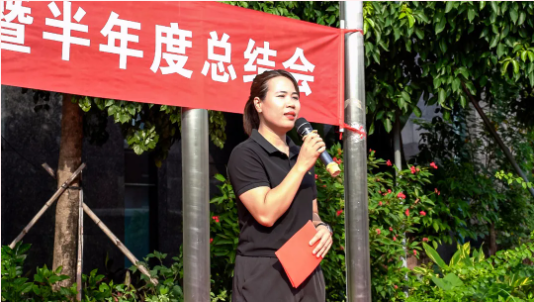人力資源部陳經理回顧半年度大事件,展望下半年工作重點及目標。