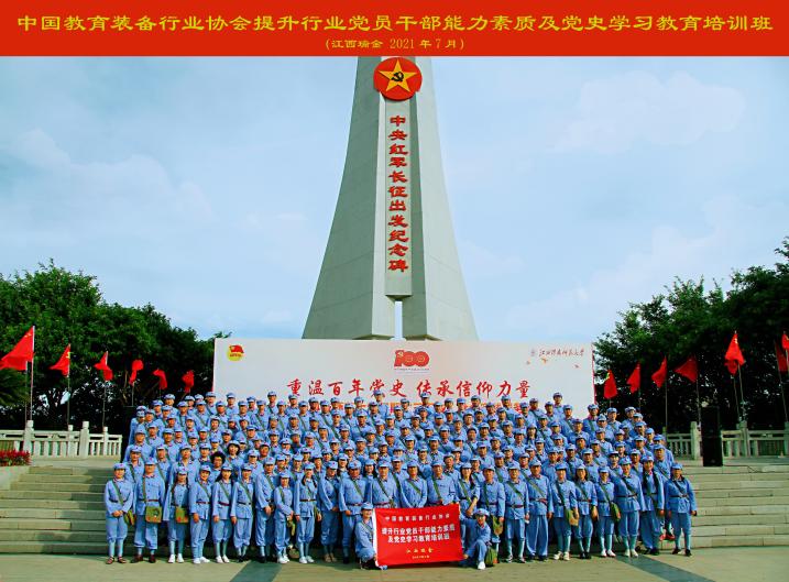 2021年7月11—12日,中國教育裝備行業(yè)協(xié)會(以下簡稱協(xié)會)在江西瑞金舉辦了2021教育裝備行業(yè)提升干部能力素質及黨史學習教育培訓班。全國各省區(qū)市教育裝備行業(yè)黨員代表共220余人參加了培訓班。本次活動旨在組織行業(yè)黨員跟著紅色地標學黨史、傳承紅色基因、汲取奮進力量,不斷鞏固和夯實黨的執(zhí)政根基。