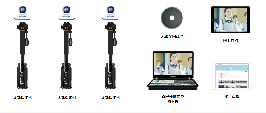 本方案由便攜式錄播一體機、高清攝像機、高保真拾音器及相關配套軟件組成。