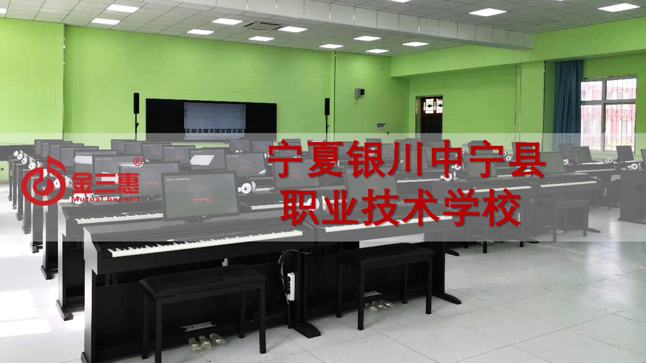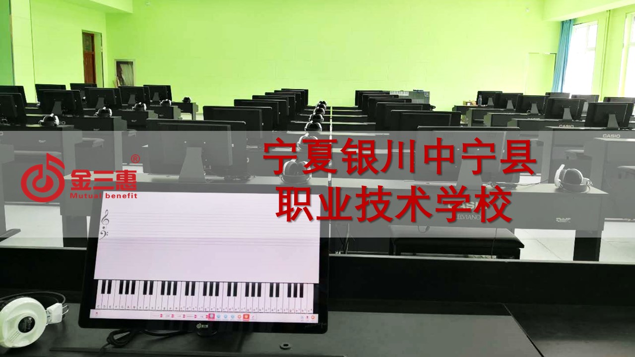 寧夏銀川中寧縣職業技術學校的電鋼琴教室正式開始使用,本校數字化音樂教室由北京金三惠科技有限公司負責提供、安裝、培訓。