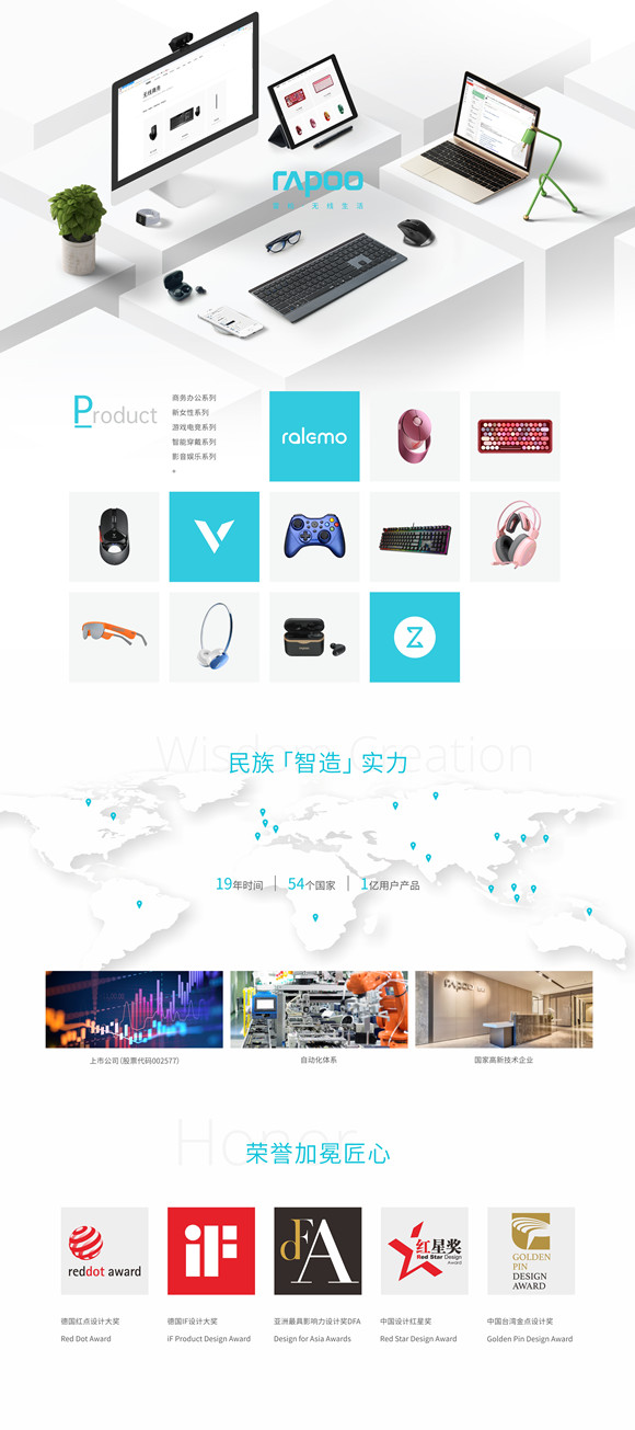 雷柏連年受邀參加德國IFA、美國CES等全球消費(fèi)電子大展,展現(xiàn)新國貨魅力。屢獲德國IF設(shè)計(jì)獎(jiǎng)、德國Reddot紅點(diǎn)設(shè)計(jì)大獎(jiǎng)、日本G-Mark設(shè)計(jì)獎(jiǎng)、亞洲D(zhuǎn)FA最具影響力設(shè)計(jì)獎(jiǎng)、中國創(chuàng)新設(shè)計(jì)紅星獎(jiǎng)、中國臺灣金點(diǎn)設(shè)計(jì)獎(jiǎng)等國內(nèi)外權(quán)威設(shè)計(jì)獎(jiǎng),讓3C硬件重塑新動(dòng)力與新方向,重構(gòu)想象。向世人展現(xiàn)新國貨的標(biāo)桿實(shí)力。