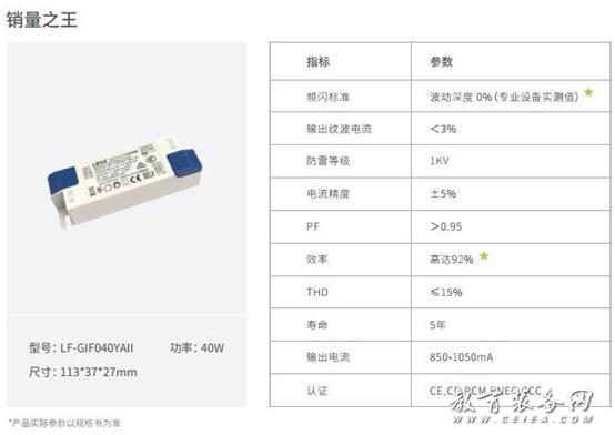2017年,萊福德92.5%超高效率、0%波動深度的爆品電源LF-GIF-YA上市,其優異的節能效果和無頻閃護眼效果深受教室照明項目歡迎,上市5年期間配合客戶安裝10萬+間教室,2019年為更好的助力國家兒童青少年近視防控工作,為教室照明提供更優質的產品,萊福德針對性研發3款常規教室照明及1款智慧教室照明專用電源,并于2020年正式推廣上市,現今實現月銷量40萬+Pcs。