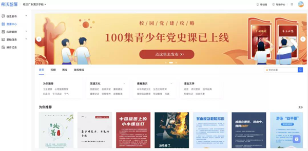 以多元化的德育資源支撐,滿足學(xué)校各階段德育教育和實(shí)踐的需求。希沃面向?qū)W校提供黨建、安全教育、科普知識等30+個(gè)主題的圖庫和海報(bào)。此外,希沃云屏內(nèi)置3000+分鐘德育課程,7500+分鐘黨課資源,為學(xué)校的德育教育展示提供更多選擇。