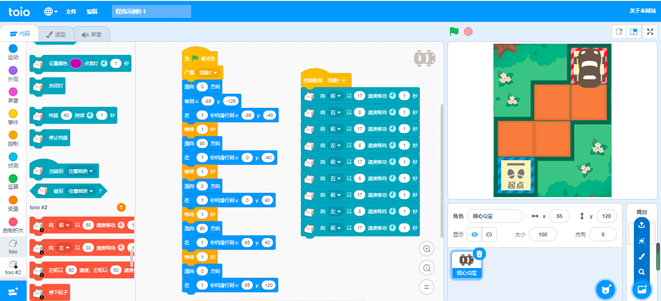 具備基礎編程邏輯思維的用戶(中、高年級兒童):可以通過toio™進行可視化編程(需要用到電腦或其他終端),利用索尼開發的應用程序,用戶可以利用精準的坐標,通過Q寶繪制形狀,并使用自己編寫的程序來操控Q寶機器人。