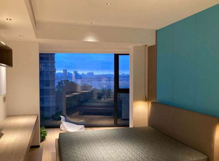 臥室內落地窗頂部增加柔光筒燈,讓人在倚欄憑望,眺看萬家燈火落時,放松一天緊張的思緒;案臺照明通過網格設計安裝射燈,可根據主人裝飾喜好、物品擺放調整射燈角度,實現重點照明,提升空間層次感及美觀度。