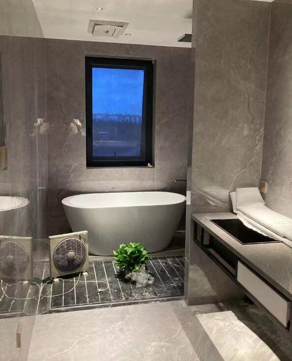 The bathroom was also equipped with the down lights and spot lights to illuminate the washstand, bathtub and other areas point to point. The LED strips were used to illuminate the areas under the washstand, enhancing the overall visual brightness of the washstand.