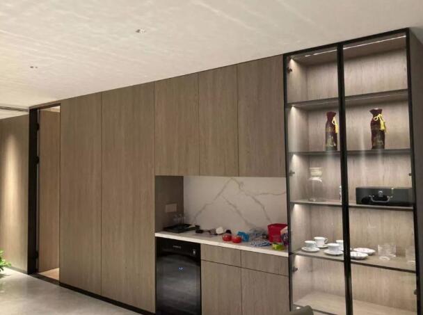 該公寓利用了萊福德往期燈帶應用分享中的櫥柜照明設計,利用小燈帶及筒燈,讓整個櫥柜更加明亮通透,不僅方便使用,整個燈光開啟后也與房間內其他空間相呼應,提高房間整體設計感。