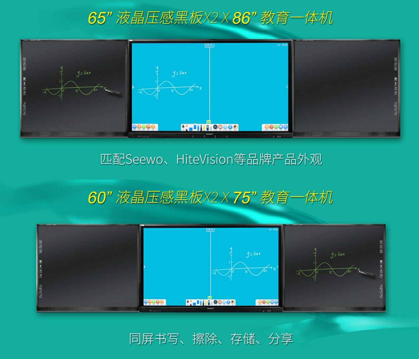 Howeasy Board®液晶壓感黑板無藍光,不產生粉塵和油墨,書寫時不用筆不用電,局部擦寫更容易,一鍵清除更輕松,能全面替代普通黑板、綠板、白板,打造更健康的板書環境。無縫互聯教育一體機、電子白板等現有信息化設備,實現同步書寫、擦除、存儲和分享等,徹底解決書寫耗材的高頻次采購和反復污染,實現極致的環保書寫體驗。目前已在廣東、山東、北京、江蘇、重慶、福建、貴州等省市中小學批量使用。