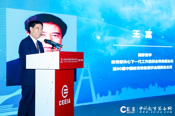 國家關心下一代工作委員會常務副主任、第80屆中國教育裝備展示會組委會主任王富、中國教育裝備行業協會城市教育裝備工作委員會理事長喬玉全、四川省學校國有資產教育裝備中心副主任李昌玉、成都市委教育工委專職副書記、市教育局黨組成員何榮等各級教育行政部門領導出席本次論壇。