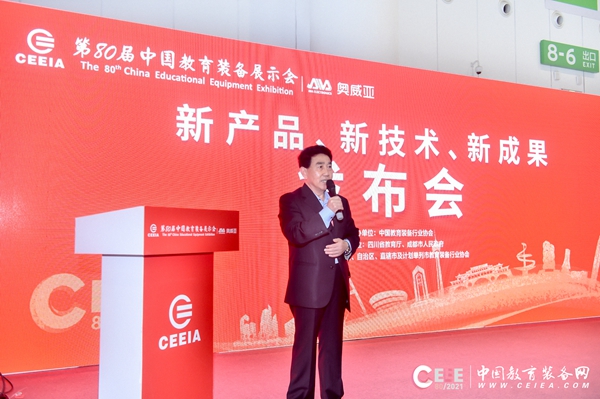 由中國(guó)教育裝備行業(yè)協(xié)會(huì)主辦、四川省教育廳、成都市人民政府承辦、各省、自治區(qū)、直轄市及計(jì)劃單列市教育裝備行業(yè)協(xié)會(huì)協(xié)辦的新產(chǎn)品、新技術(shù)、新成果發(fā)布會(huì)在中國(guó)西部國(guó)際博覽城舉行。中國(guó)教育裝備行業(yè)協(xié)會(huì)常務(wù)副會(huì)長(zhǎng)李興植主持發(fā)布會(huì)。