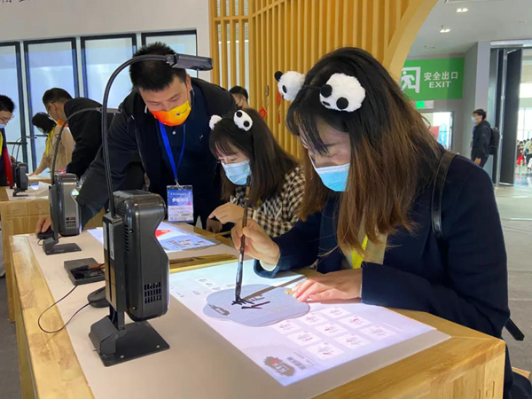 創意禮品此次展會推出創意禮品,各位參觀者可以到翰墨派云書法教室任意體驗臨摹,之后將臨摹佳作帶走。創意禮品有各色團扇、福字卡、翰墨宣紙等。展會第一天參與者眾多,每位路過的賓客都不忍錯過妙筆生花的機會。