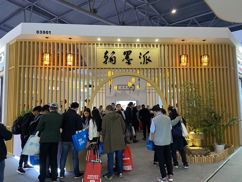 翰墨派強勢來襲,一改古典美的風范,本次亮相新中式建筑風格。搭配小橋流水人家,儼然成為成都展的網紅展位,吸引眾多美女賓客打卡臨摹。