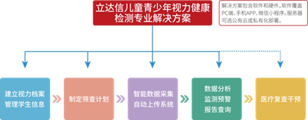 作為國內最早關注學生近視問題,并率先提供專業護眼產品及健康光環境解決方案的先行者,立達信重磅推出兒童青少年視力健康監測專業解決方案——專為3-18歲兒童青少年視力篩查防控而設計,集篩查、監測、預警為一體,可快速創建視力健康檔案,為各級教育局、學校提供權威、準確的數據,助力近視防控工作聯動協同,為學生視力健康保駕護航。