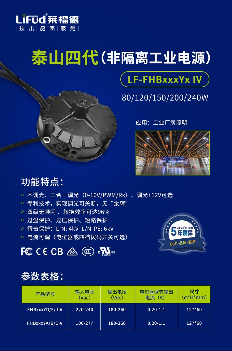 本次項目分為多期逐步改造,總計涉及萊福德LF-FHBxxxYx IV電源15000Pcs。該系列是萊福德非隔離UFO圓形工礦燈電源第四代產品,從行業(yè)首創(chuàng)非隔離大功率UFO產品LF-FHBxxxYx,到不斷完善推出LF-FHBxxxYx IV,萊福德始終在以客戶為中心,挖掘客戶潛在需求,解決客戶應用問題,持續(xù)進行產品優(yōu)化升級,為客戶提供更多有價值有意義的產品。