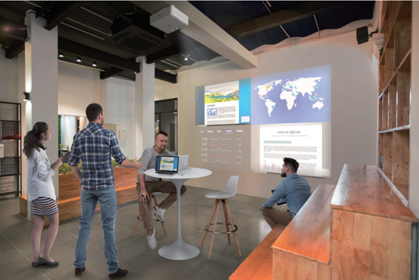 您可以在同一屏幕上同時投影顯示出來自4個設(shè)備的內(nèi)容。例如在一場視頻會議中,屏幕內(nèi)可同時放映多方參與者影像和會議材料。愛普生激光投影機帶來的大畫面投影使溝通更高效。