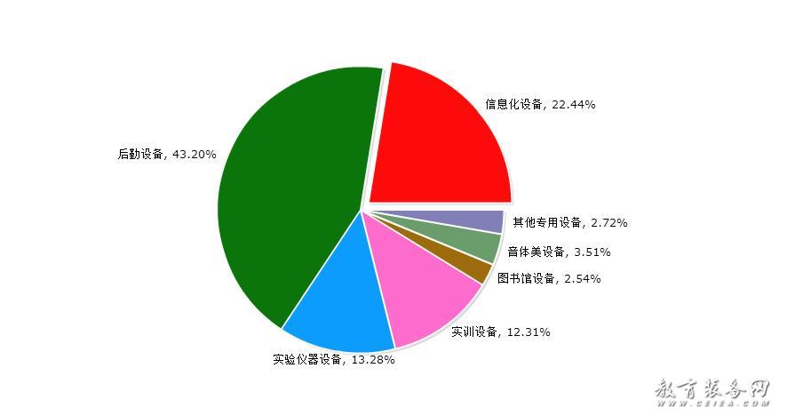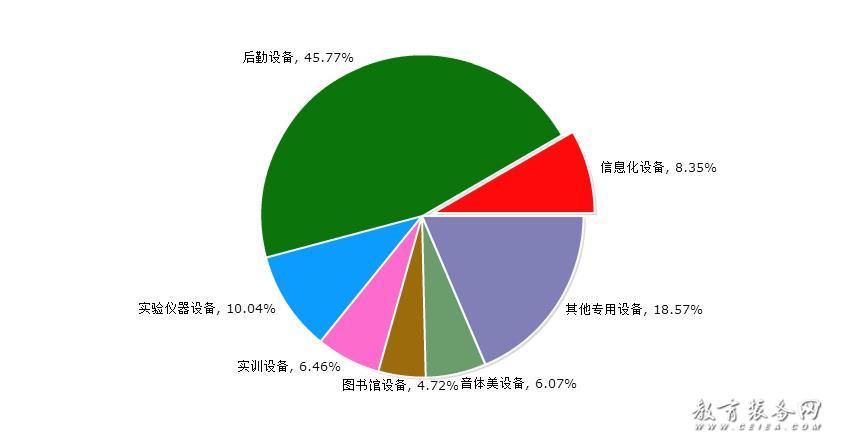 根據(jù)對(duì)教育裝備細(xì)分的歸納,教育裝備網(wǎng)將教育裝備具體劃分為七大類(lèi),即信息化設(shè)備(含智能平板、錄播系統(tǒng)、智慧黑板等),后勤設(shè)備(含校園基建、安防設(shè)備、食堂設(shè)備、課桌椅等),實(shí)驗(yàn)儀器設(shè)備(含儀器儀表、實(shí)驗(yàn)室平臺(tái)等),實(shí)訓(xùn)設(shè)備(含實(shí)訓(xùn)系統(tǒng)、實(shí)訓(xùn)設(shè)施等),圖書(shū)館設(shè)備(含借還系統(tǒng)、微型圖書(shū)館等),音體美設(shè)備(含樂(lè)器、體育設(shè)施、美術(shù)用品等),其他專(zhuān)用設(shè)備(含創(chuàng)客教育、心理健康特教設(shè)備等)。