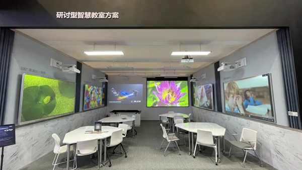 研討型智慧教室是一種新興教學空間,呈現為可以進行高效小組討論、實時分享內容、便捷交互師生信息的多媒體教室,它通過更好的互動協(xié)作,促進每一位同學更好的成長和發(fā)展。