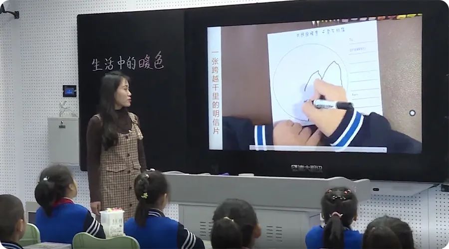 濟南教育電視臺對此次同步課堂活動進行了報道。課堂上,濟南市天橋區濱河左岸小學的教師為兩地學生帶來了《生活中的暖色》美術課,在楊老師的帶領下,學生們各自展示自己的作品,交流互動頻繁,課堂氛圍十分熱烈。