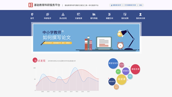 萬方數據基礎教育科研服務平臺是萬方數據本著“著眼細微環節,服務一線教研”的方針所研發的基礎教育科研專屬的文獻及工具一體化服務平臺,從基礎教育科研的方法論、寫作規范及成果文體的模板和樣例提供,到定性和定量選題參考、文獻查詢、課題組成員交流、課題報告和論文查重、成果保存、論文投稿參考等,為中小學教師教育科研及寫作提供全流程的服務,助力提升中小學教師學科專業素養和教育科研能力。