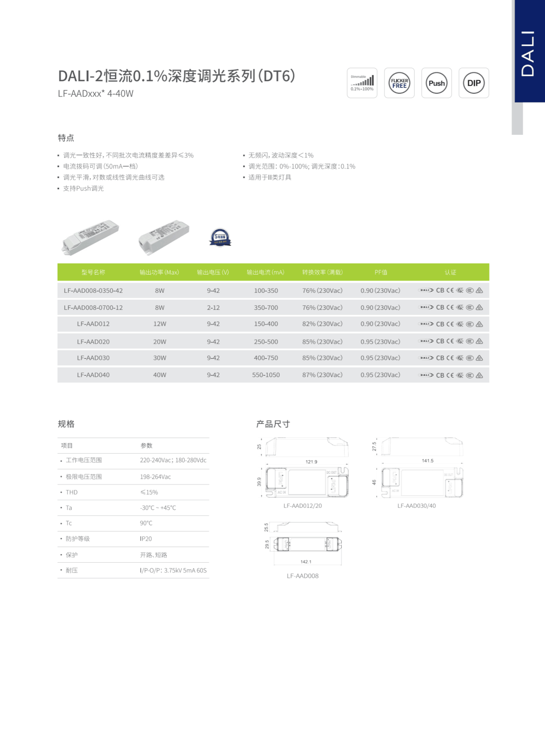 ·恒流AAD調光電源:首款超小體積+全認證DALI調光產品