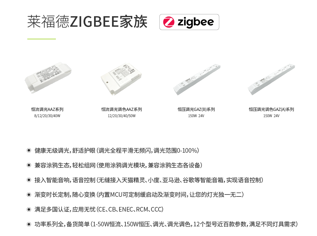 2021年,萊福德智能家族人員大幅擴充,產品線已涵蓋PLC、DALI、0-10V、可控規、Zigbee、藍牙各種調光方式,可滿足恒流、恒壓、調光、調光調色、RGB等多種選擇,可為客戶提供一站式采購服務。