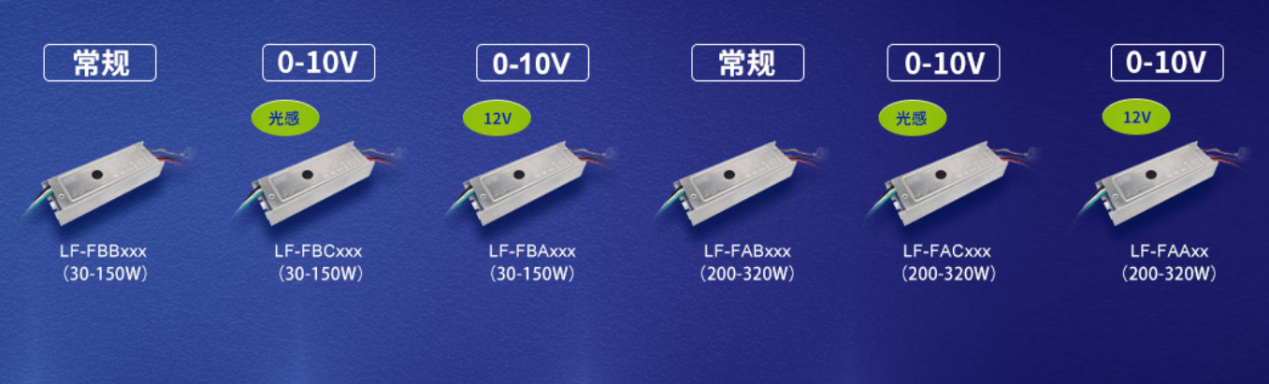 該系列也可說是萊福德路燈大家族了,因為該系列中包含有多個型號,調光方式涵蓋DALI、0-10V/PWM/Rx及非調光可選,功能有數字可編輯、智適應恒功率、定時控制、光衰補償,兼容正負調光邏輯、12V輔助供電等可選。