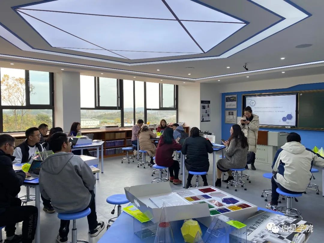 數(shù)字化地理和歷史教室大家都已經(jīng)非常熟悉了。這次就帶大家實(shí)地了解一下數(shù)字化數(shù)學(xué)教室是什么樣的。這是貴陽(yáng)市第九中學(xué)的STEAM數(shù)學(xué)創(chuàng)新實(shí)驗(yàn)室。通過(guò)三維立體幾何模型和軟件、數(shù)學(xué)素質(zhì)資源庫(kù)、數(shù)學(xué)探究活動(dòng)課程包、三維重力博弈棋盤、移動(dòng)平板等軟硬件來(lái)解決數(shù)學(xué)老師幾何、代數(shù)、函數(shù)等重難點(diǎn)問(wèn)題。現(xiàn)場(chǎng)老師們認(rèn)真學(xué)習(xí)記筆記,希望能把這些設(shè)備和資源熟練的運(yùn)用到常規(guī)課堂當(dāng)中。
