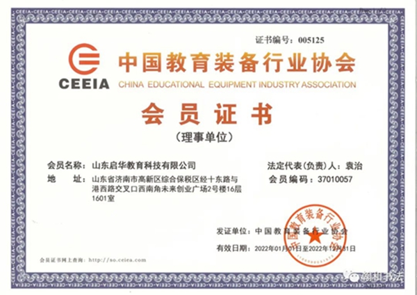 山東啟華教育科技有限公司,被評為中國教育裝備行業(yè)協(xié)會理事單位。