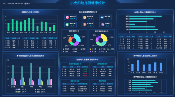 是從日常的晨檢、病假、體檢等數據切入,通過智能管理和分析助手,幫助幼兒園發現可能存在的健康隱患,并用數據測量實際健康管理工作的成效。