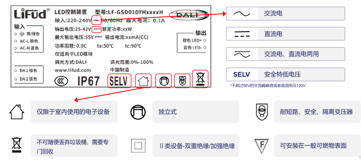 針對DALI電源,還有DALI2.0標識,表示該產(chǎn)品滿足DALI2.0認證標準。相比DALI標準,DALI2.0不僅顯著提升了的不同廠商產(chǎn)品之間的互通與兼容性,還詳細完善了產(chǎn)品測試。