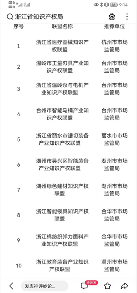 浙江省市場監督管理局關于推薦2022年省級備案產業知識產權聯盟(第一批)的公示