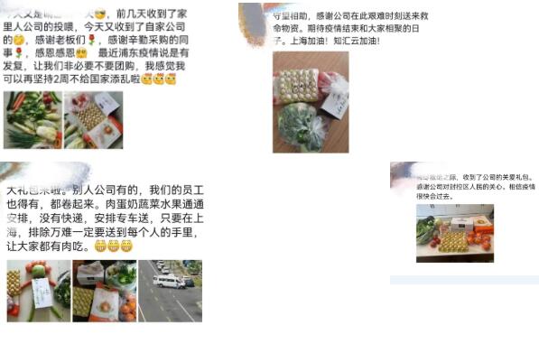 目前正是疫情防控的關鍵時刻,特別是嚴格封控的上海,正身處于此次抗疫的深水區。知匯云心系著位于上海總部的員工,深知每一位員工都可能面臨著“買菜難”“沒糧食”的困境。公司急員工所急,想員工所想!將每一位員工的安全和健康放在首位。