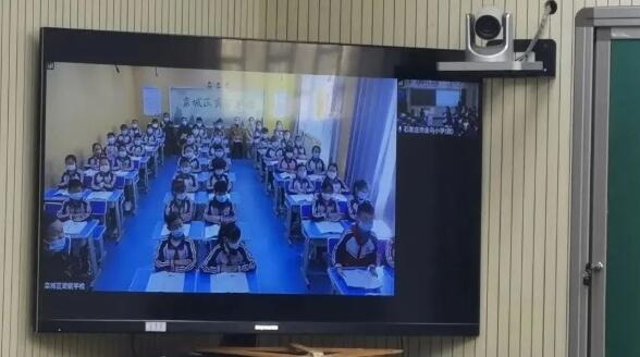 “梁國楊氏子九歲,甚聰惠。孔君平詣其父,父不在,乃呼兒出。”課堂上,王老師以“讀”為主線,層層遞進(jìn),帶領(lǐng)學(xué)生們理解楊氏之子的機(jī)智之處,這節(jié)輕松愉快的古文之旅,在銳取錄播教室內(nèi)實(shí)現(xiàn)高清記錄和直播,課堂畫面全方位、多角度的同步傳遞至?xí)r空另一邊的教室,竇嫗學(xué)校的學(xué)子和老師們通過教室內(nèi)的大屏,與金馬小學(xué)的同學(xué)們異地互動(dòng),同屏交流,“零距離”沉浸式遠(yuǎn)程互動(dòng)體驗(yàn)輕松打造!