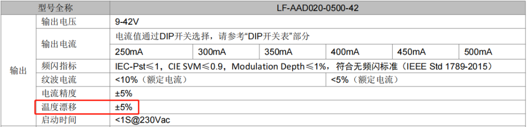 輸出電流的上下浮動值,精度越高波動范圍越小,批量時所有燈具的亮度一致性也就會更好。