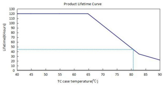 質(zhì)保說明“5年(Tc ≤80.5℃)”,表示該產(chǎn)品5年壽命質(zhì)保是在Tc ≤80.5℃的條件下,具體不同應(yīng)用溫度下的壽命情況還可參照規(guī)格書中壽命曲線查看。