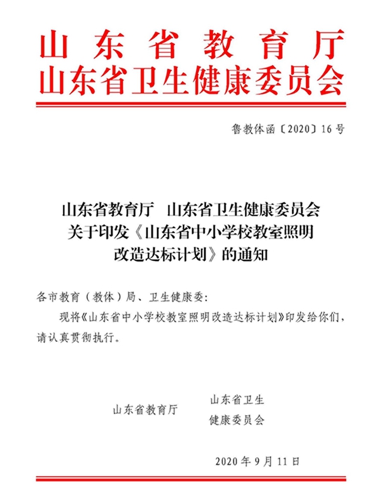 為有效遏制兒童青少年近視高發、低齡化趨勢,自2020年9月,山東省教育廳與山東省衛生健康委員會就聯合印發了《山東省中小學校教室照明改造達標計劃》,提出要確保2023年底前,全省學校教室照明100%符合國家標準要求,并全面完成教室照明達標任務。