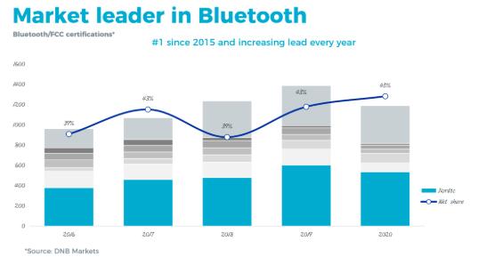 Nordic半導(dǎo)體作為低功耗藍(lán)牙技術(shù)的領(lǐng)導(dǎo)者,市占率達(dá)40%以上,擁有高性能SoC器件、開發(fā)工具和參考設(shè)計(jì),為廣大的開發(fā)者及客用戶提供完備的產(chǎn)品、技術(shù)服務(wù)。